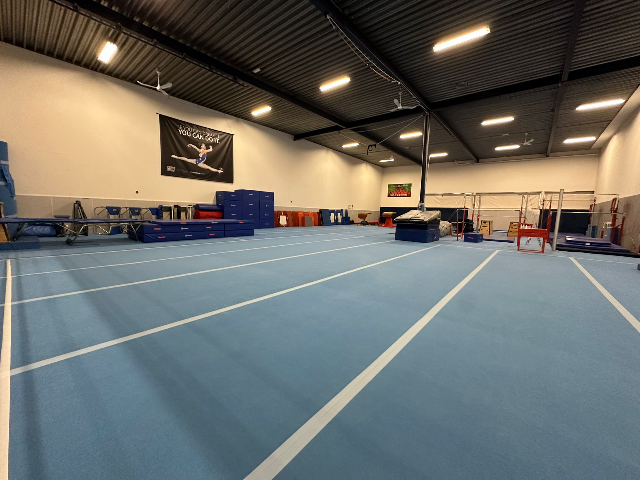 All training sessions take place in the modern gymnastics center in Rijssen, fully equipped by BOSAN. The acro hallmeasures 18 by 15 meters and features a fully sprung floor, along with a mini tumble track, mirror wall, harnesses for saltos, and more.